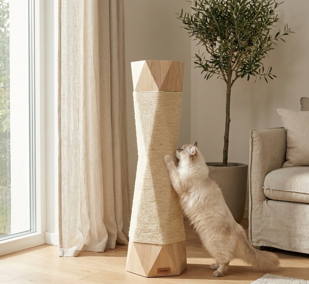 特色: 捨棄傳統笨重的貓跳台,改用天然劍麻繩纏繞出現代幾何造型。體積輕巧,能融入各種角落空間。