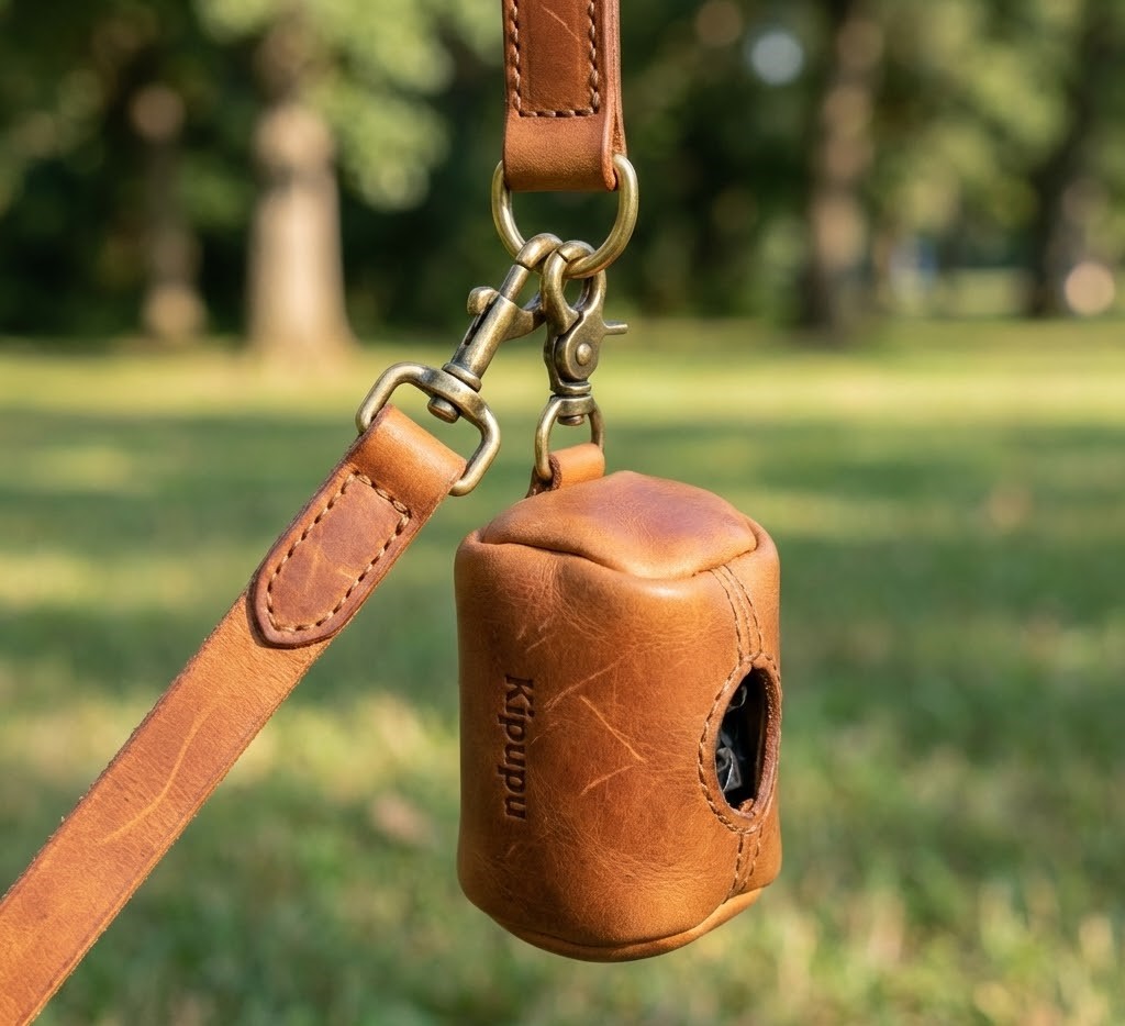 特色: 迷你精緻的皮革小包,使用與牽繩同等級皮革製作。可加上黃銅鉤扣掛在牽繩D環上,讓撿便便這件事也變得優雅。