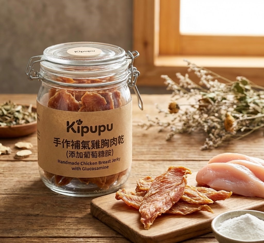 特色: 人食等級雞胸肉手工切片,額外添加關節保養成分,吃零食也能兼顧健康。