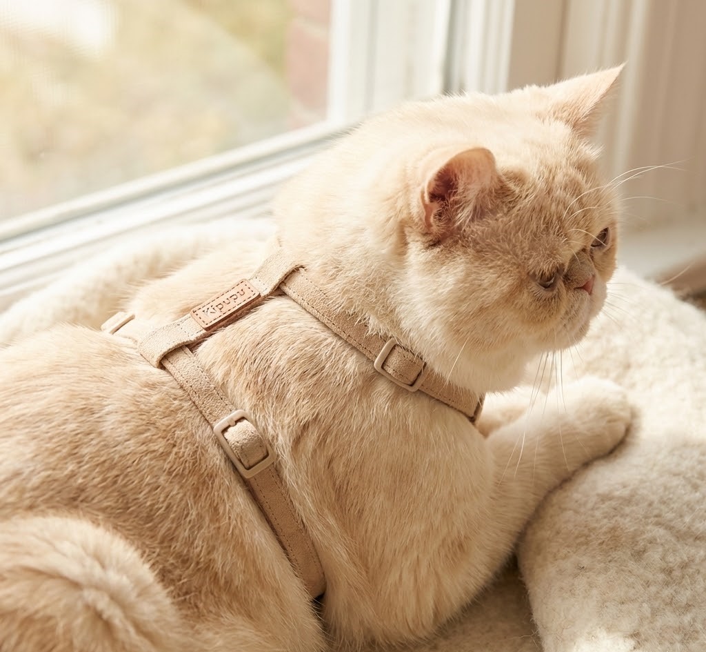 特色: 選用觸感如奶油般柔軟的麂皮絨材質,結構極簡化,將接觸面積降到最低,適合對束縛感敏感的貓咪。