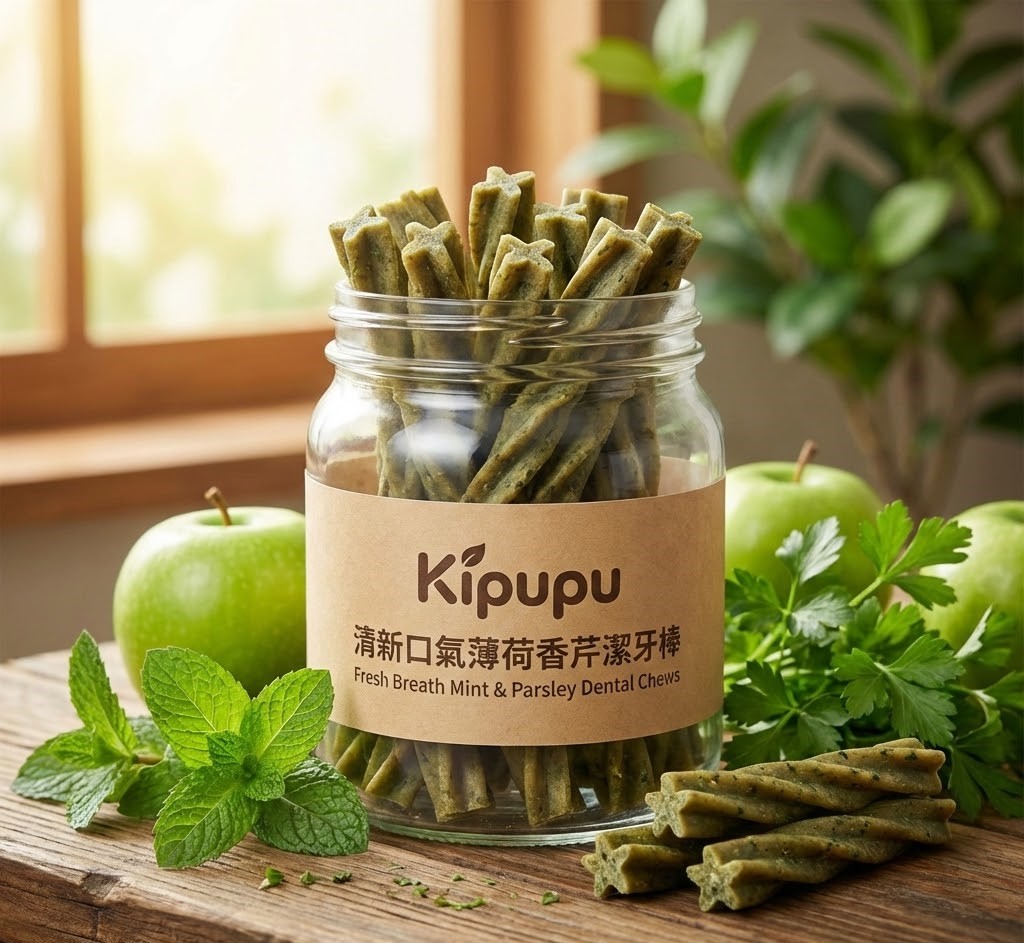 特色: 添加天然薄荷葉與巴西里(香芹),在咀嚼同時幫助清潔牙垢並帶來清新口氣。